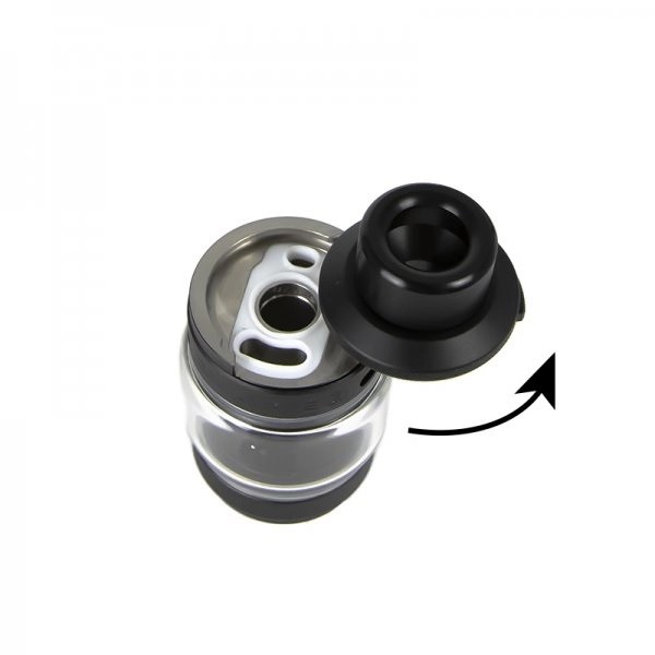 SécuriséUne fois de plus, Geekvape pense à tout ! Le clearomiseur Zeus sub-ohm SE est équipé d'une sécurité enfant, pour plus de sûreté. Celle-ci prend la forme d'un bouton situé sur le top cap. Après avoir appuyé dessus, vous n'avez plus qu'à faire pivoter le top cap sur la droite pour accéder au réservoir. |