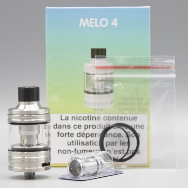Le Melo 4 est la dernière version du célébre clearomiseur subohm fabriqué par Eleaf. Cette nouvelle édition a été entièrement repensée afin d’offrir une expérience de vape riche et savoureuse. Disponible en deux versions, une TPD ready de 22 mm de diamètre avec un réservoir de 2 ml et une de 25 mm de diamètre avec un réservoir de 4,5 ml.