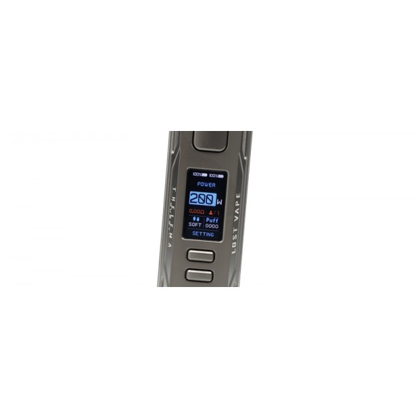 La box Thelema Quest Lost Vape fonctionne à l'aide de deux accus au format 18650. Généreuse et disposant d'une bonne autonomie, elle peut délivrer, sans difficulté, jusqu'à 200 watts. Grâce à la fameuse puce Quest 2.0, elle dispose des modes Power, Voltage, VPC, Bypass et contrôle de température. Il s'agit d'ailleurs de l'un des chipsets les plus performants.
