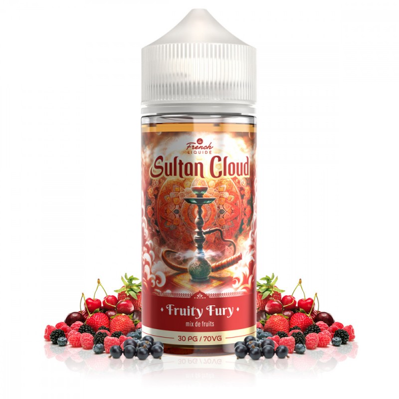 Le e-liquide Fruity Fury Sultan Cloud de Le French Liquide est proposé en format 100ml boostée en arômes, dans un flacon 120ml ne contenant pas de nicotine (0mg). Il vous sera possible d’en ajouter selon vos besoins et sans perte de saveur grâce à un ou plusieurs boosters de nicotine (non inclus) !
