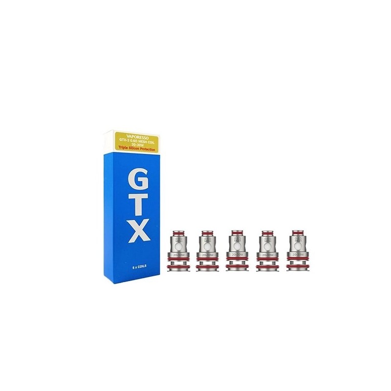 Les résistances GTX sont proposées en pack de 5. Elles s'utilisent avec les pods, Target PM80, Target PM80 SE, Luxe PM40, Swag PX80, GTX Go 80, GTX Go 40, Luxe 80, Luxe 80 SE mais aussi avec les clearomiseurs GTX Pod, GTX 18 et GTX 22 de Vaporesso.