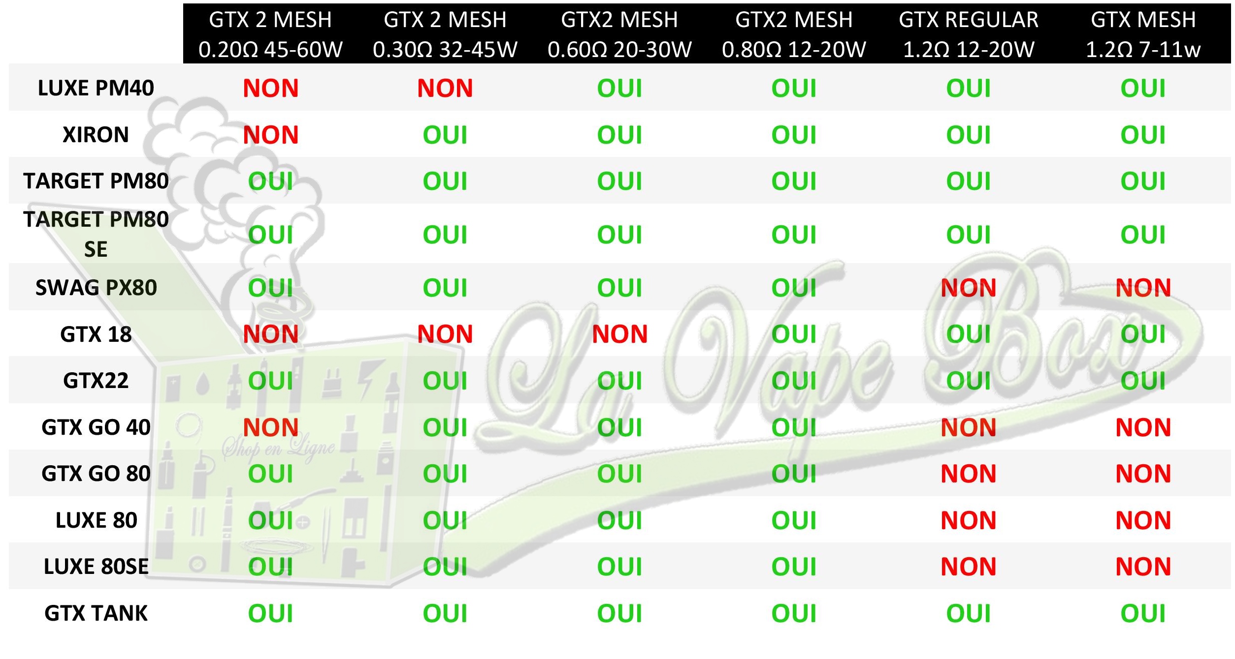 Compatibilité des résistances GTX Vaporesso