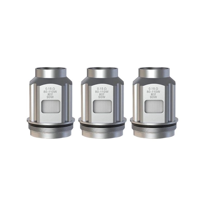 3 résistances TFV18 mini Dual Mesh de 0.15 ohm à utiliser entre 80 et 110 watts.